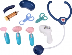- A szett különféle eszközöket tartalmaz, többek között otoszkópot, neurológiai kalapácsot, fecskendőt és más szükséges kellékeket.
