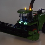 Ez a részletgazdag távirányítós kombájn hiteles aratási élményt nyújt a gyerekeknek. Indításkor hallható a motor beindulása és alapjárata, előremenetben felkapcsolnak a első lámpák és a villogó, tolatáskor jelzőhang szól és a fények villognak. Egyetlen gombbal a fény- és hangeffektek kikapcsolhatók.