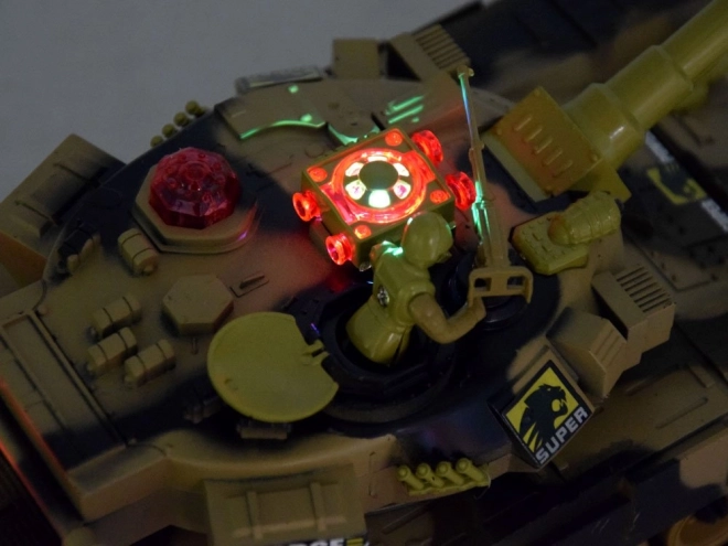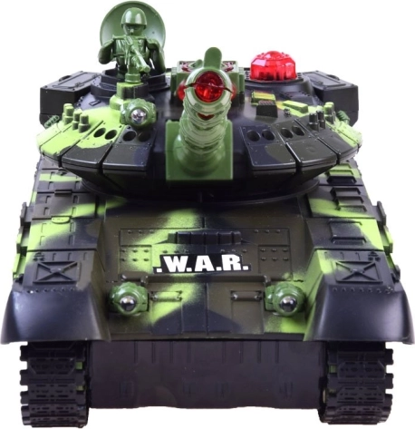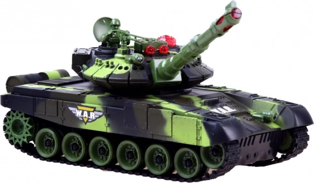A tank LED világítással (első fények, látványos toronyfények) és hangeffektekkel (motor, ágyúlövés, géppuska) van felszerelve. Három találat után az ellenfél kb. 30 másodpercre ideiglenesen kiiktatásra kerül, majd a küzdelem elölről indulhat. A puha gumilánctalp jó tapadást és egyenletes mozgást biztosít különböző felületeken.