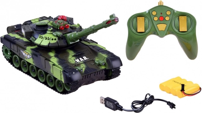 - RC tank, vezérlő, USB töltő, tankakku, harckocsizó figura