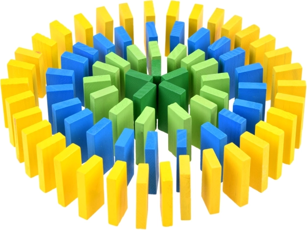 A Jokomisiada dominókészlet 300 gondosan megmunkált, élénk színű fa elemet tartalmaz, ideális kreatív építéshez, láncreakciókhoz és szabad játékhoz. A gyerekek egyszerű és bonyolult pályákat is tervezhetnek, kísérletezhetnek formákkal és magasságokkal, fejlesztve a képzelőerőt és a logikus gondolkodást.