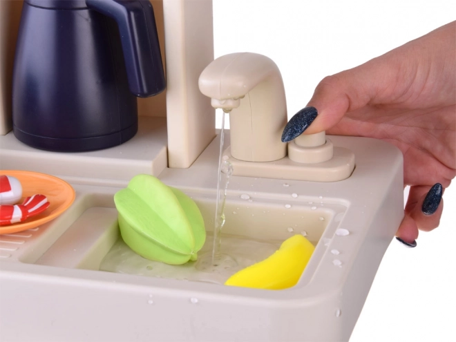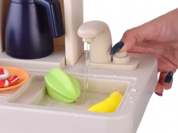 A mosogató csapja zárt körben keringeti a vizet. Így a gyerekek „elmoshatják” az ételeket és az edényeket rendetlenség nélkül, maximális szórakozással.