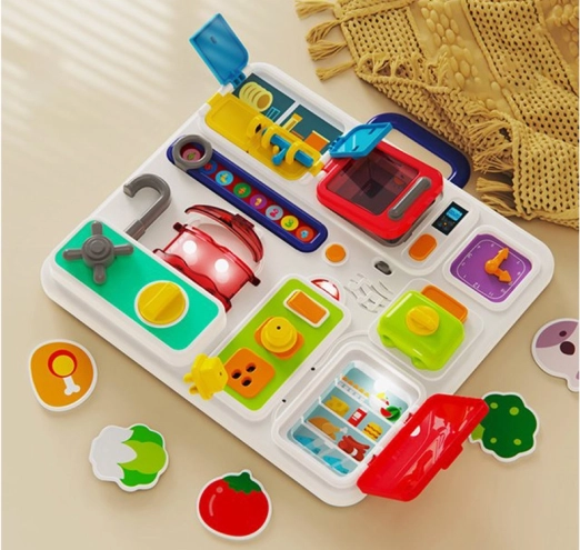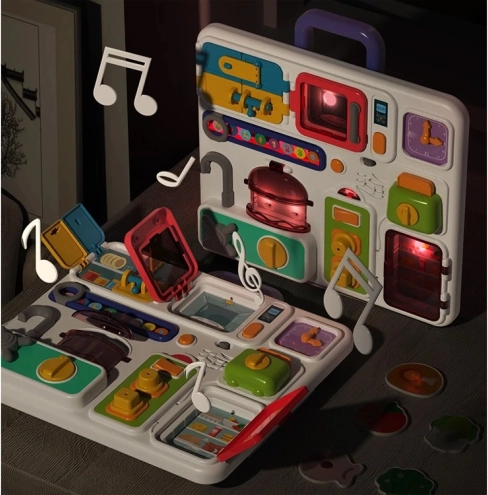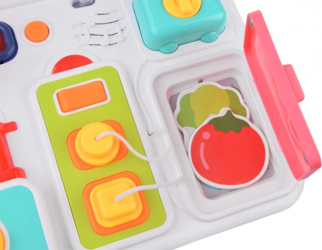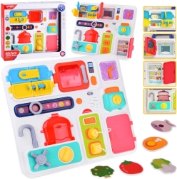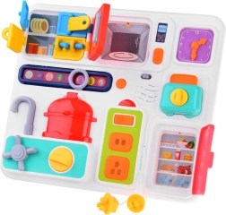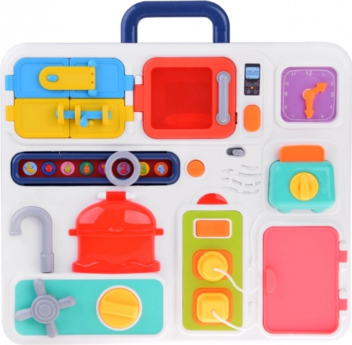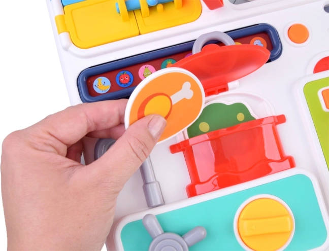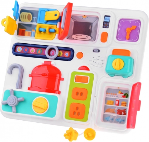 Az interaktív konyhai tábla órákig tartó szórakozást biztosít a legkisebbek számára. Kiváló minőségű műanyagból készült, és számos elemet tartalmaz, amelyek serkentik a szellemi tevékenységet. A dallamos hangok és a villogó fények kíséretében minden játék egyedi.