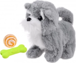 Az interaktív szürke kutyus nagyszerű játék a gyerekeknek, akik szeretnének játszani valamivel, ami több mint egy egyszerű plüssjáték. Ez a kutyus nemcsak ugat és sípol, de előre és hátra mozog, mozgatja a fejét, nyitja és zárja a száját, valamint csóválja a farkát. A kutyus további szórakoztató kiegészítőkkel érkezik – puha gumicsonttal és színes labdával. f Interakció és mozgásf Szórakoztató tevékenységekf Fejleszti a gyermekek kreativitását és képzeletét