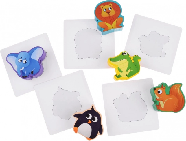 A csomagban további 12 kétoldalas kártyát találunk. Az egyik oldalon egy állatrajz, míg a másikon csak annak körvonalai láthatók, így a gyermeknek az a feladata, hogy megtalálja a megfelelő blokkot az adott körvonalhoz. Az aranyos állatkák játékra ösztönöznek, ami lehetőséget ad az állatok neveinek megismerésére. A játék során együtt kiadhatjátok az állatok hangját, így gyakorolva a beszédkészséget, és közösen különböző történeteket is kitalálhattok.
