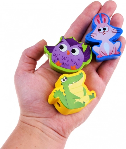 A színes fa fűzős állatos kirakó tökéletes választás a gyermekek kézügyességének fejlesztésére. A készlet 12 fából készült, állat formájú blokkból áll. A fűző segítségével átfűzve a gyerekek gyakorolják a szem-kéz koordinációt, a finommotorikát és a koncentrációt.