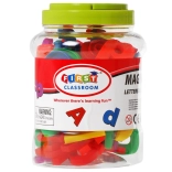 A készlet kis- és nagybetűket, valamint számokat és matematikai jeleket tartalmaz, így óvodásoknak és kisiskolásoknak egyaránt ideális. A mágnesek jól tartanak a hűtőn, mágneses táblán vagy más fém felületen, és kiválóak közös családi tevékenységekhez.