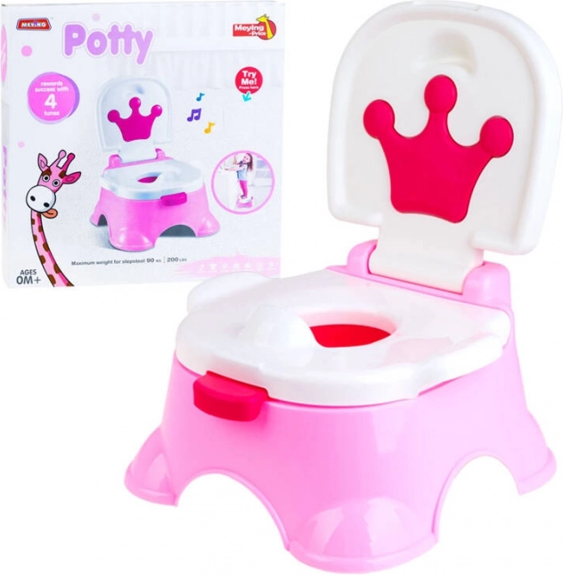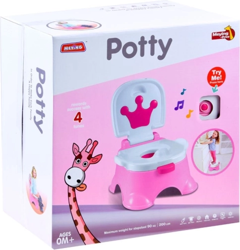 Aranyos és praktikus bili kis hercegnőknek, amely sikeres használat után vidám dallamot és fanfárokat játszik le. A 2 az 1-ben funkcióknak köszönhetően teljes értékű, fedeles biliként és fellépőként a mosdóhoz is használható. Stabil, kényelmes, és a kivehető betétnek köszönhetően nagyon könnyen tisztítható.