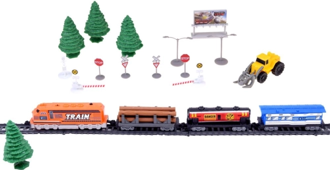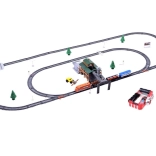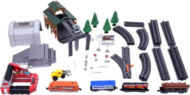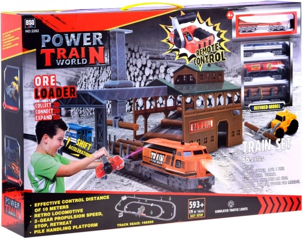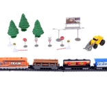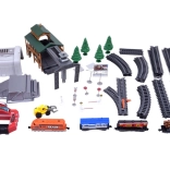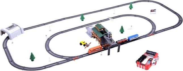 Remek tehervonat-utánzat vagonokkal és állomással. Ez a távirányítású vasúti szerelvény rendelkezik a szállított áru kirakodórendszerével és a pálya módosításának lehetőségével, ami nagyszerű játékká teszi a vonatok iránt érdeklődő gyerekek számára. Hosszú órákon át tartó szórakozást és sok örömet nyújt a kis mozdonyvezetőnek.