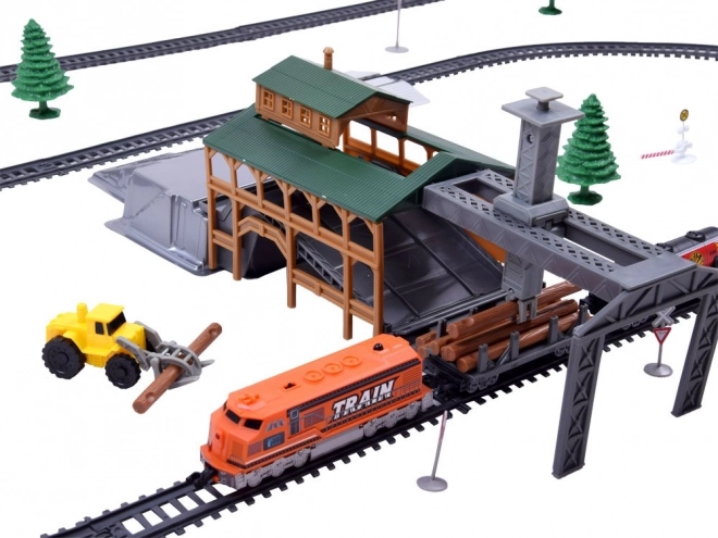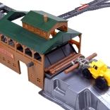 - Tartalmaz minden szükséges elemet a játékhoz, beleértve a síneket, közlekedési táblákat, fákat és az átrakodó állomást a tehervonattal és különféle vagonokkal.