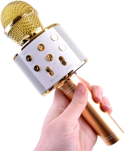 - Vezeték nélküli karaoke mikrofon beépített hangszóróval