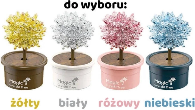A kristályfák különböző színváltozatai a kísérletet gyönyörű dekorációvá varázsolják. Ha nincs megadva konkrét árnyalat, a színt véletlenszerűen küldjük.