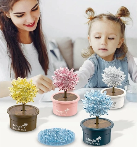 Ez az oktatási STEM kísérlet lehetővé teszi a gyerekek számára, hogy megfigyeljék a kristályosodás valódi folyamatát – az oldat előkészítésétől a gyönyörű kristálykorona növekedéséig. Néhány nap alatt egyedi kristályfa születik, amely látványos szobadísz és az első tudományos kísérlet emléke lesz.