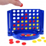 A közkedvelt CONNECT 4 játék zsebváltozata két játékosnak okos szórakozást kínál útközben. Dobjátok a korongokat a rácsba, és próbáljatok meg négyet összekapcsolni egy sorban előbb, mint az ellenfél – függőlegesen, vízszintesen vagy átlósan. A összecsukható tálcának és a tárolóhelynek a táblában köszönhetően minden alkatrész könnyen elpakolható. Fejleszti a logikus gondolkodást, a stratégiát, a koncentrációt és a ügyességet.