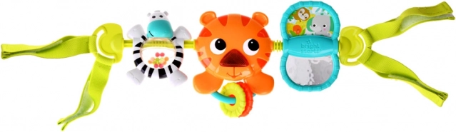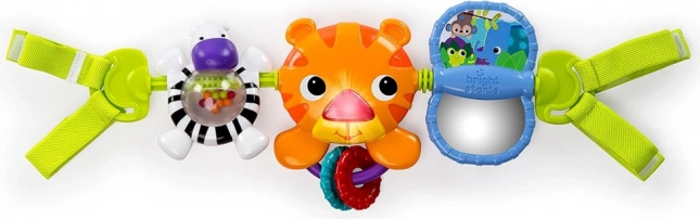 Textilpántok segítségével a játék könnyen rögzíthető a babakocsira, autósülésre vagy kiságyra, így otthon és útközben is szórakozást nyújt.