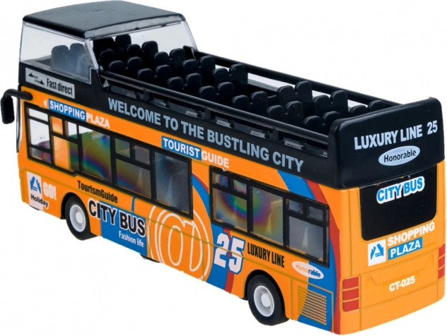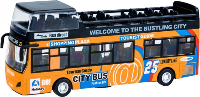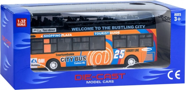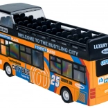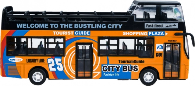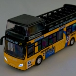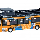 Ez a részletgazdag városi emeletes busz modell minden gyermeket lenyűgöz. A masszív fém és műanyag kombináció tartósságot biztosít, míg a nyitható tolóajtók és a felkapcsolódó belső világítás autentikus utazási élményt nyújt.