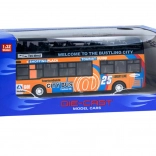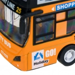 Az alváz megnyomására motorindítás, menet- és duda-hangok aktiválódnak, miközben villognak az első lámpák, és világít az utastér. A lendkerekes meghajtás (pull-back) révén a busz felhúzás után magától elindul – ideális önálló és közös játékhoz is.