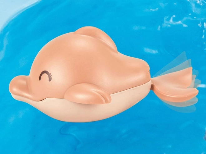 Felhúzható úszó játék kiváló segítő a szórakoztató fürdők számára. Tartós műanyagból készült, kellemes színekkel, ez a játék úgy lett tervezve, hogy minden gyermek figyelmét felkeltse. A hasa alatt található egy felhúzó mechanizmus, amely a vízbe merüléskor aktiválja a farok mozgását, így úszik a játék.
