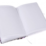 Gyönyörű, fehér színű napló csillogó elemekkel, amely elbűvöl minden lányt. Tartalmaz 96 sorvonalat a titkos gondolatok könnyű leírásához. Szabadon díszíthető a saját fantáziával, ami egyedivé és megismételhetetlenné teszi. Kulccsal biztosított, hogy minden kívánság és gondolat biztonságban legyen.