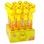 A cuki, sárga kiskacsa formájú buborékfújó rengeteg szórakozást nyújt a gyerekeknek kint és bent egyaránt. Elég kihúzni a pálcikát és finoman ráfújni – máris gyönyörű, szivárványszínű buborékok szállnak a levegőben. Mozgás közben a játék brekegésre emlékeztető hangot ad ki, így nemcsak a látvány, hanem a hang is örömet okoz. Remek választás kerti játékokhoz, ünnepségekhez és közös pillanatokhoz, támogatja a gyerekek koordinációját és egyensúlyát.