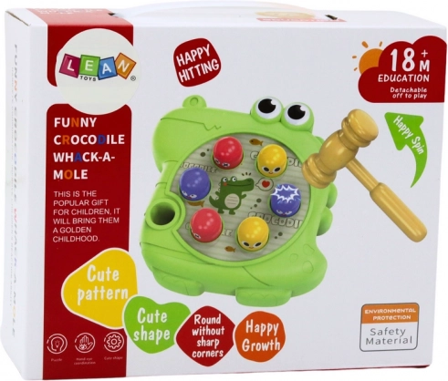 A játék lényege, hogy a kalapáccsal rácsapunk a krokodil testének különböző részein felbukkanó figurákra. Ez a dinamikus tevékenység fejleszti a pontosságot és a mozgáskoordinációt, emellett megtanítja a gyerekeket a koncentrációra és a gyors reakciókra.