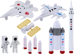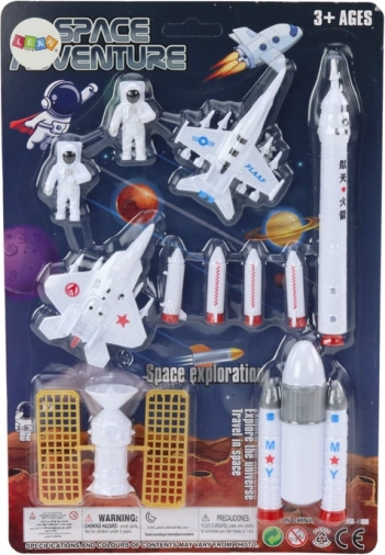 Az űrhajós figurák készlete egyedi űrruhát viselő asztronautákat tartalmaz. Ezen kívül a készlet különböző méretű és alakú rakétákat tartalmaz.