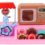 Ez a készlet támogatja a kreativitást és a finom motoros készségeket, köszönhetően a valósághű játéktérnek, amely mikrohullámú sütővel és fánk választékkal rendelkezik.