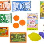 A készlet tartalmaz egy pénztárgépet is, amely lehetővé teszi a vásárlás folyamatának szimulálását. A kassza digitális kijelzővel van felszerelve, amely támogatja a matematikai műveleteket, mint az összeadás és kivonás, ezzel támogatva nemcsak a szórakozást, hanem a gyermekek oktatási fejlődését is.