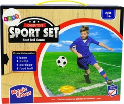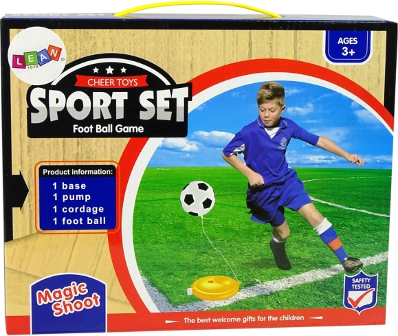 Futball szett zsinóros labdával és pumpával, ideális a gyerekek koordinációs és kondíciós készségeinek fejlesztésére. A gumiszálnak köszönhetően a labda visszatér rúgás után, ami hatékony edzést tesz lehetővé.