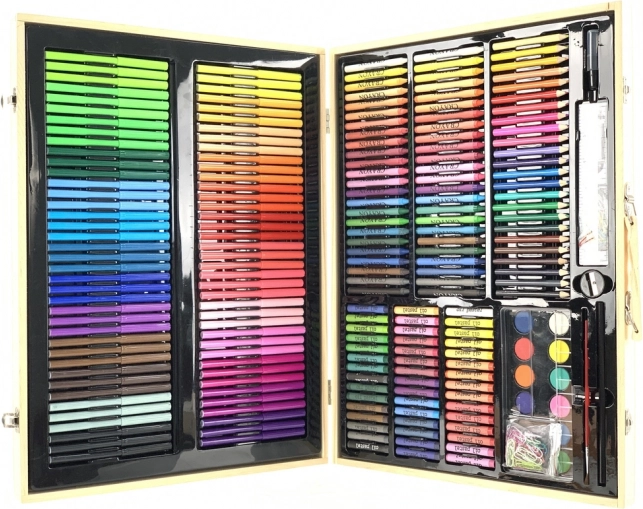 Ez a színes készlet lehetővé teszi a hosszú távú szórakozást, valamint a tartalom megosztását más gyermekekkel. Minden elem elegáns, fémzáras fa bőröndbe van csomagolva, megkönnyítve a szállítást és tárolást.
