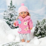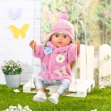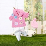 Tartozék a pomponos sapka és egy praktikus vállfa is. Minden könnyen feladható a 43 cm-es BABY born babákra.