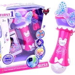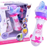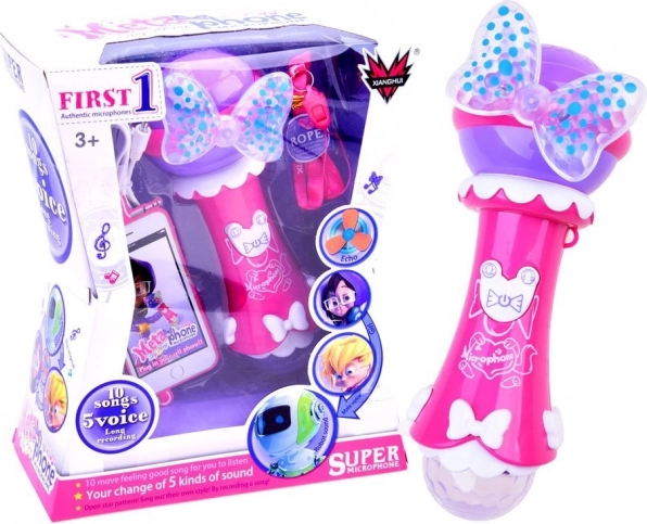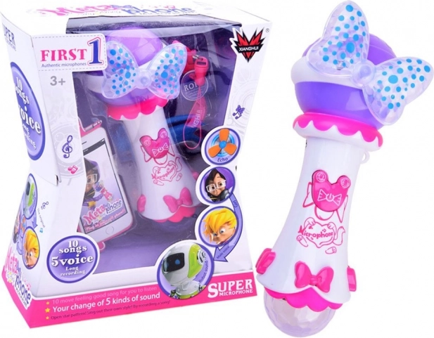 Legyél a nappali színpadának sztárja! A rózsaszín‑lila dizájnú, masnis gyerek karaoke mikrofon szórakozást és kreatív játékot hoz. A felvétel és lejátszás révén a gyerekek visszahallgathatják a produkciójukat, az MP3 bemenet lehetővé teszi az éneklést kedvenc kísérettel, a fényhatások pedig megteremtik a koncert hangulatát.