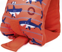 Az élénk narancssárga szín és a játékos minta növeli a gyermek láthatóságát a vízben, és fokozza az örömteli mozgást.
