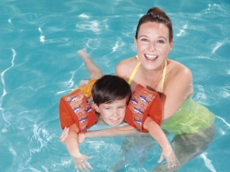A Bestway S/M karúszók 1–3 éves (11–18 kg) gyerekek számára készültek, és segítenek a vízbiztonság és magabiztosság kialakításában. A puha textilborítású, ellenálló vinyl minimalizálja a kidörzsölődést, és megkönnyíti a fel- és levételt. Az élénk színeknek és játékos motívumoknak köszönhetően a gyerekek jól láthatók a vízben.