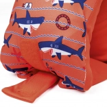 - Kiváló láthatóság – feltűnő narancssárga szín és aranyos hal/cápa minták.