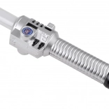 Nyomja meg a markolaton lévő gombot, és a penge fényes kék fénnyel ragyog fel, kiemelve minden párbajt és jelmezt.