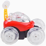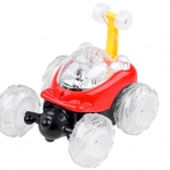 A mini kaszkadőr autó őrült trükkökre és sima forgásokra lett tervezve. Az első tengely szabad örvényt és forgást tesz lehetővé, így látványos 360°-os pörgéseket tud végrehajtani. Az átlátszó, világító kerekek lenyűgöző fényhatásokat keltenek menet közben, ami a gyerekek és felnőttek számára egyaránt élvezetes.