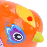 Színes mintái és a madárka formája alkotásra ösztönzi a gyerekeket és a hangok felfedezésére motivál.