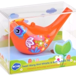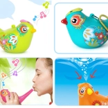 Ez a vízsíp madárka formában könnyű, tartós és ideális gyerekeknek. Víz nélkül tiszta, világos hangot ad; kevés vízzel megtöltve a madárka dallamosan csiripel. A hangerőt és a hangmagasságot könnyen befolyásolhatja a víz mennyiségével és a fújás erejével.