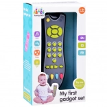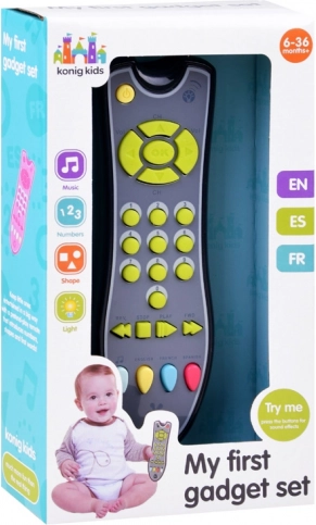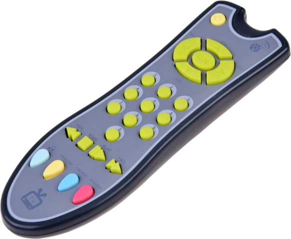 A távirányító 1-től 9-ig számol három nyelven (angol, francia, spanyol), és különféle dallamokat játszik. A puha gumigombok és az ergonomikus forma kifejezetten a gyerekek kezéhez igazodik.