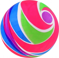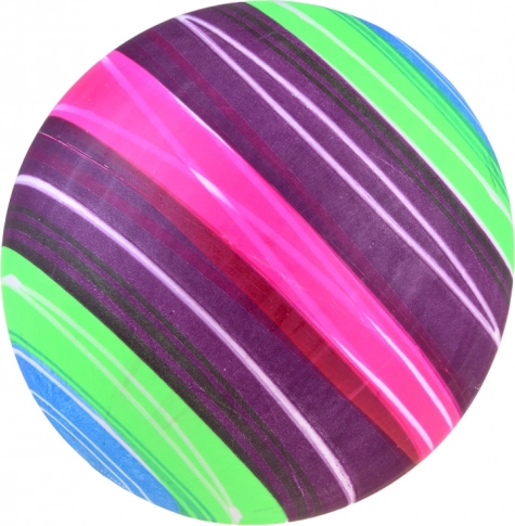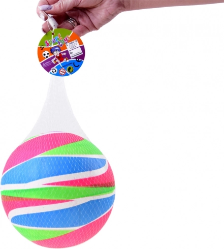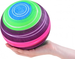 A labda élénk, szivárványszínű, amely egyaránt felkelti a gyerekek és a felnőttek figyelmét.