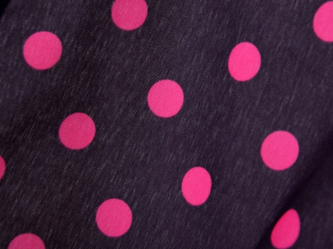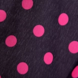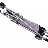 A modern, fekete színű textil ülés rózsaszín pöttyökkel tartós és kellemes tapintású. A kettős kerekek sima haladást és jó irányíthatóságot garantálnak különböző felületeken. A biztonságos összecsukható/kinyitható elemek és az ülésben lévő pántok segítenek a babát a helyén tartani.