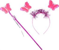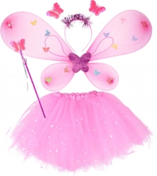 A világos rózsaszín szárnyakat színes pillangók díszítik, a hozzá illő pálca és fejpánt pedig egységes, tündéres stílust ad.