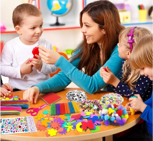 Engedje szabadjára a gyerekek képzeletét ezzel a kreatív készlettel. Különböző összetevőket tartalmaz, mint például szemek, tollak, filcek és egyebek, amelyek lehetővé teszik egyedi alkotások létrehozását. Széles szín-, forma- és textúraválaszték kínál végtelen lehetőséget a kreatív önkifejezéshez.