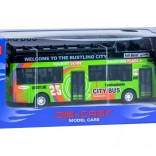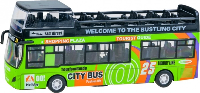 Stílusos fém emeletes busz, amely örömet okoz a kis sofőröknek és utasoknak egyaránt. A felhúzható (pull-back) meghajtásnak, a nyitható tolóajtóknak, a fényhatásoknak és a motorhangoknak köszönhetően valósághű szórakozást nyújt otthon és útközben is. A fém karosszéria és a gondos kidolgozás tartósságot és hosszú élettartamot biztosít a játéknak.