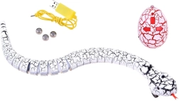 A beépített akkumulátor USB-n keresztül tölthető. A csomag tartalmazza a kígyót, a távirányítót és a töltőkábelt – csak bontsd ki, és már kezdődhet is a játék.