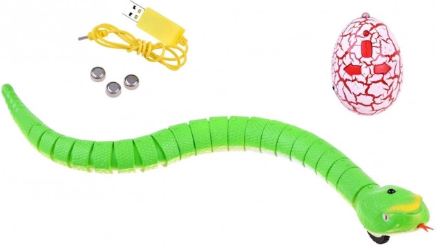 A csomag tartalmazza az RC kígyót, a tojás alakú távirányítót, USB töltőkábelt és AG13 elemeket – azonnal játszhatsz a kicsomagolás után.