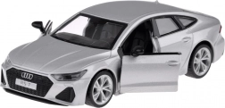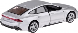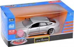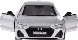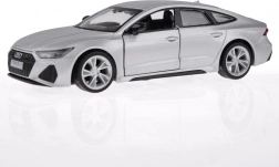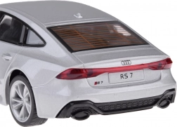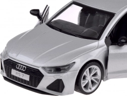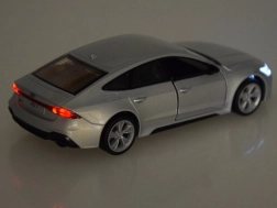 Az elegáns, ezüst színű AUDI RS 7 Sportback modell fémből készült, műanyag alvázzal, és a részletek precíz kidolgozásával hívja fel magára a figyelmet. A nyitható ajtók felfedik a belsőt, miközben az első és hátsó világítás és az autentikus hangok egyszerre nyújtanak szórakozást és valósághű élményt.