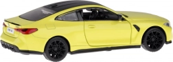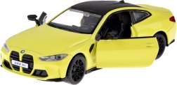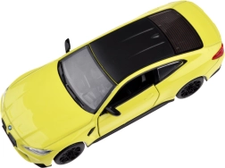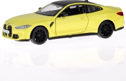 1:32 méretarányú fém BMW M4 remek kiegészítője minden autómodell-gyűjteménynek. Ez a sportkocsi precízen és esztétikusan kidolgozott, nagy figyelemmel a részletekre, ami biztosan örömet szerez minden kis sofőrnek. Az autó nyitható ajtókkal rendelkezik, valamint hang- és fényhatásokat kínál. A BMW súrlódómotoros (friction power) meghajtással van felszerelve, ami azt jelenti, hogy sima felületen hátratolás után előreindul. A jármű tolással is mozgatható.