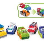 Gyűjtsd össze a teljes szériát, amely tartalmaz versenyautót, pick-upot, tűzoltóautót, rendőrautót és dömpereket!